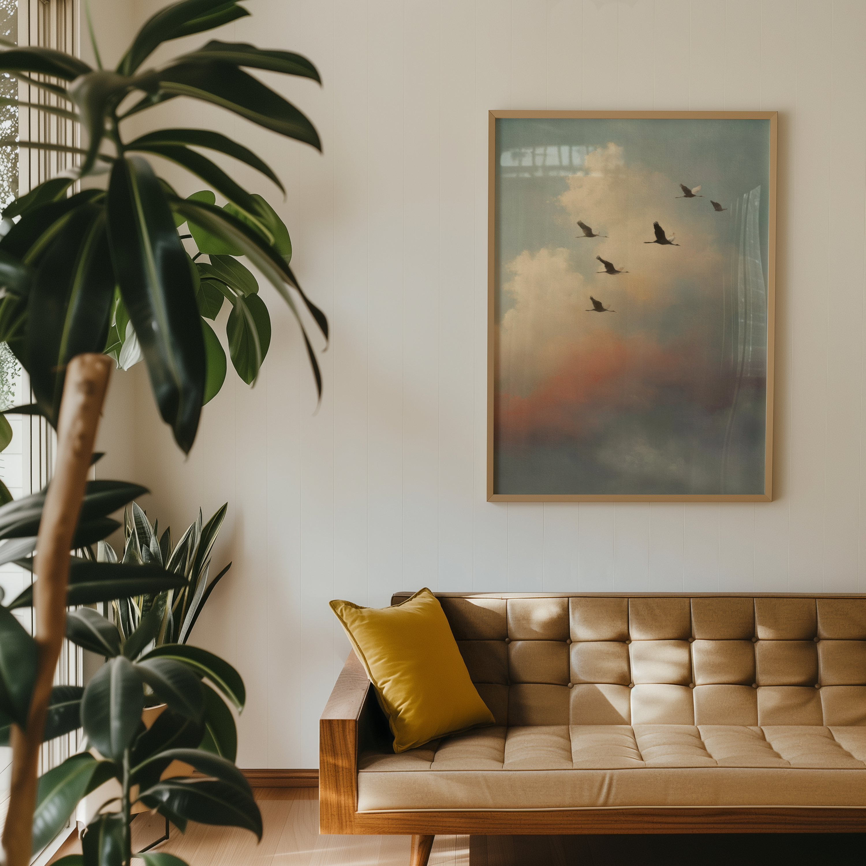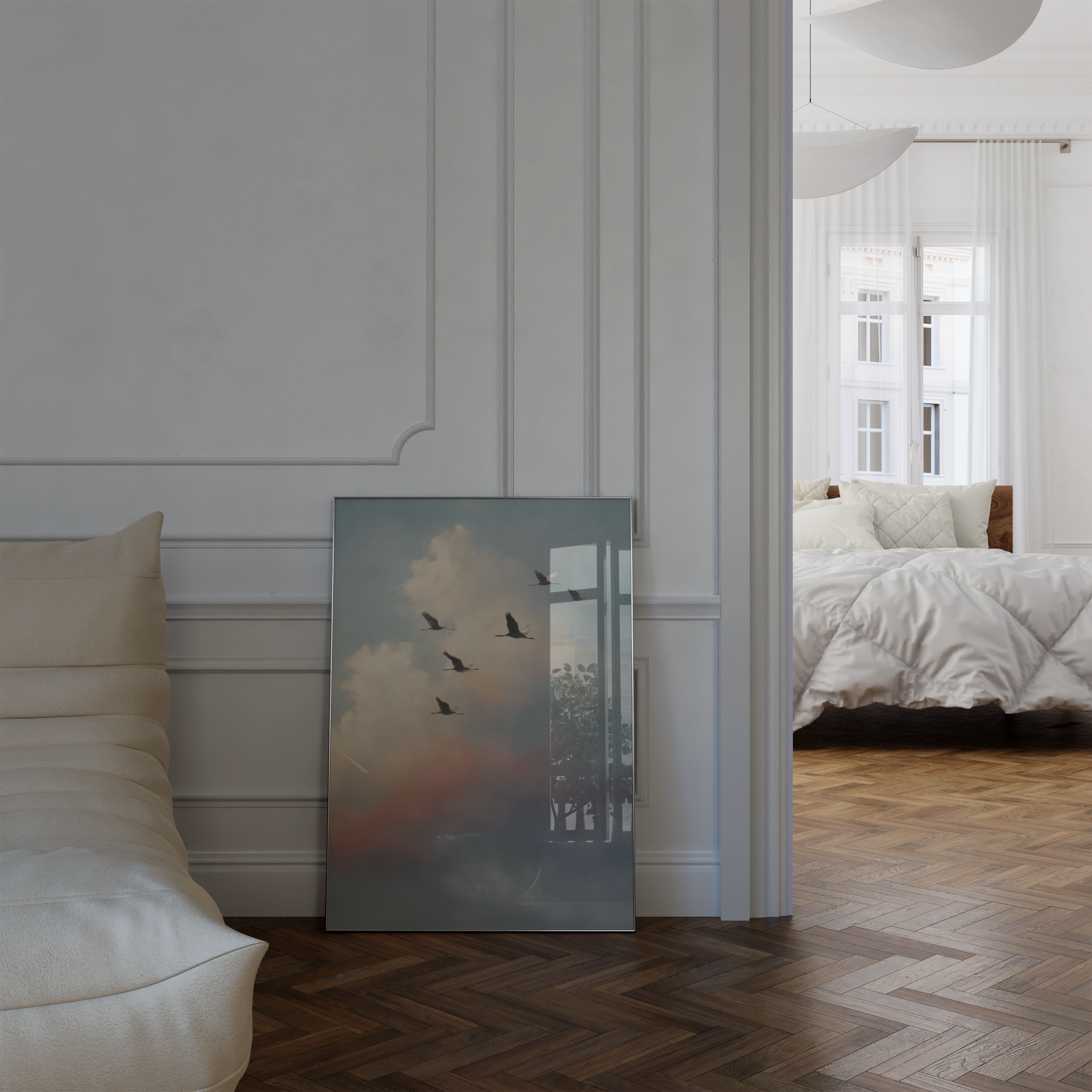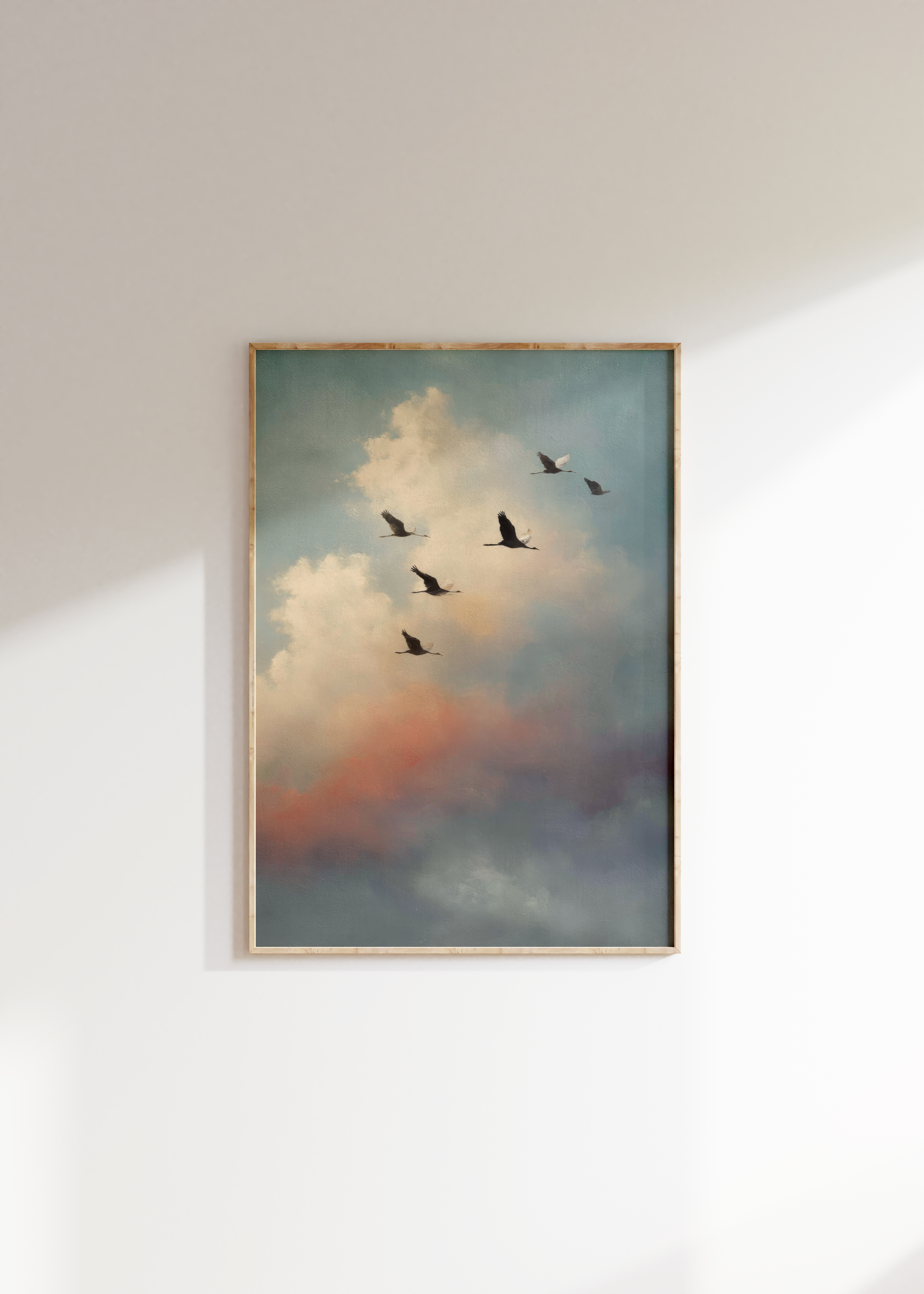 Almost Home is the kind of quiet that says everything. A group of birds in mid-migration, silhouetted against a pastel sky that glows with morning softness and dreamlike distance. It’s about movement, memory, and that lingering sense of “not quite there yet.”