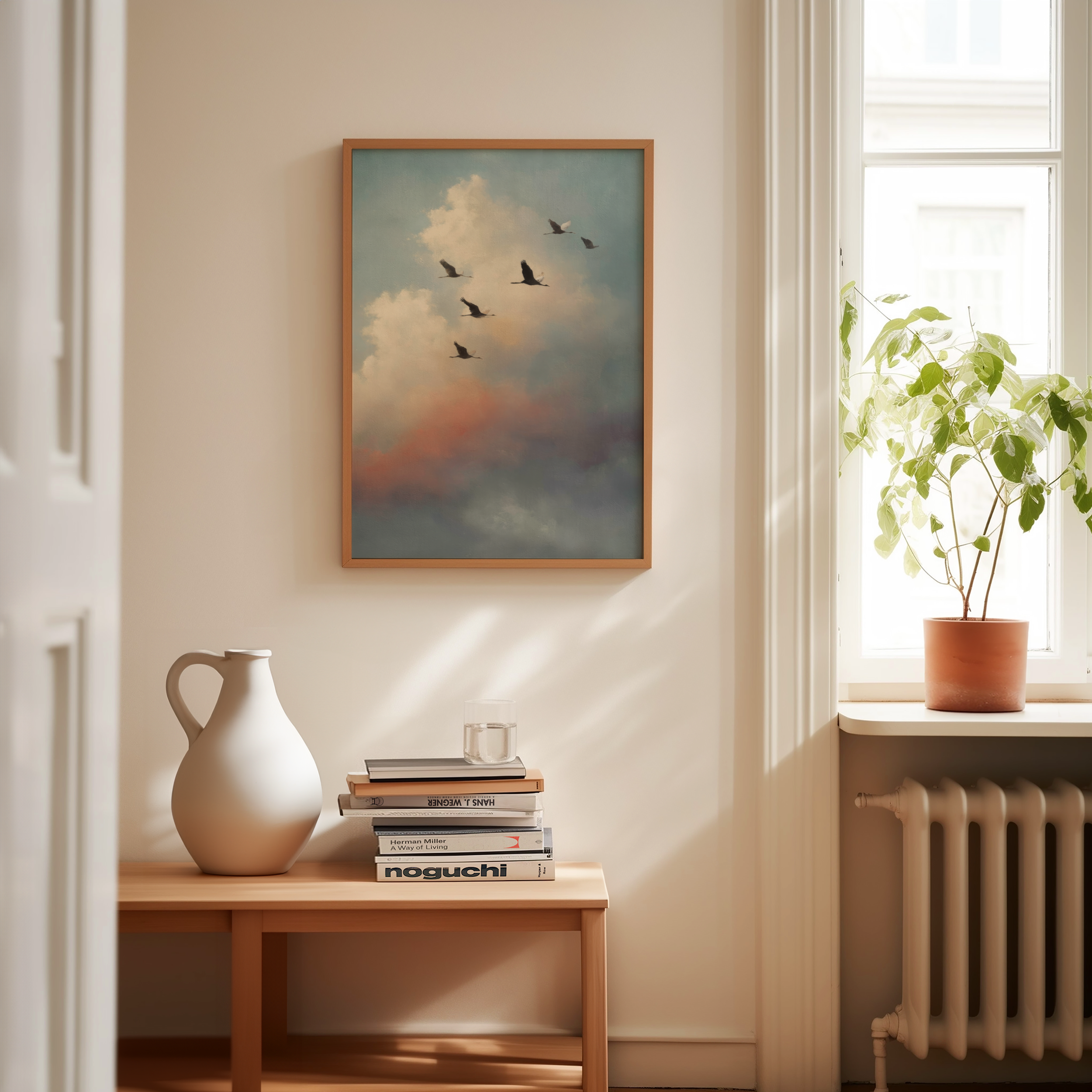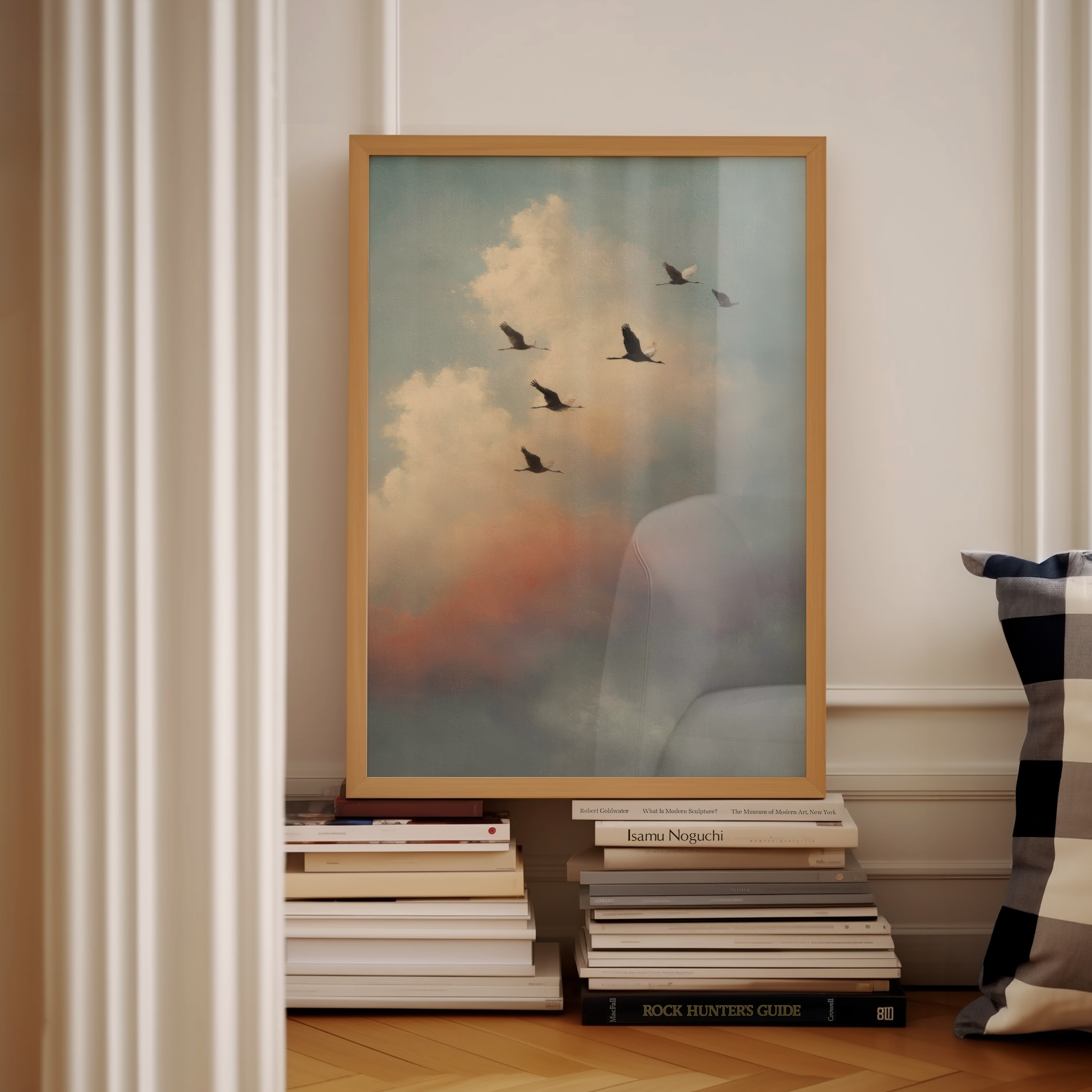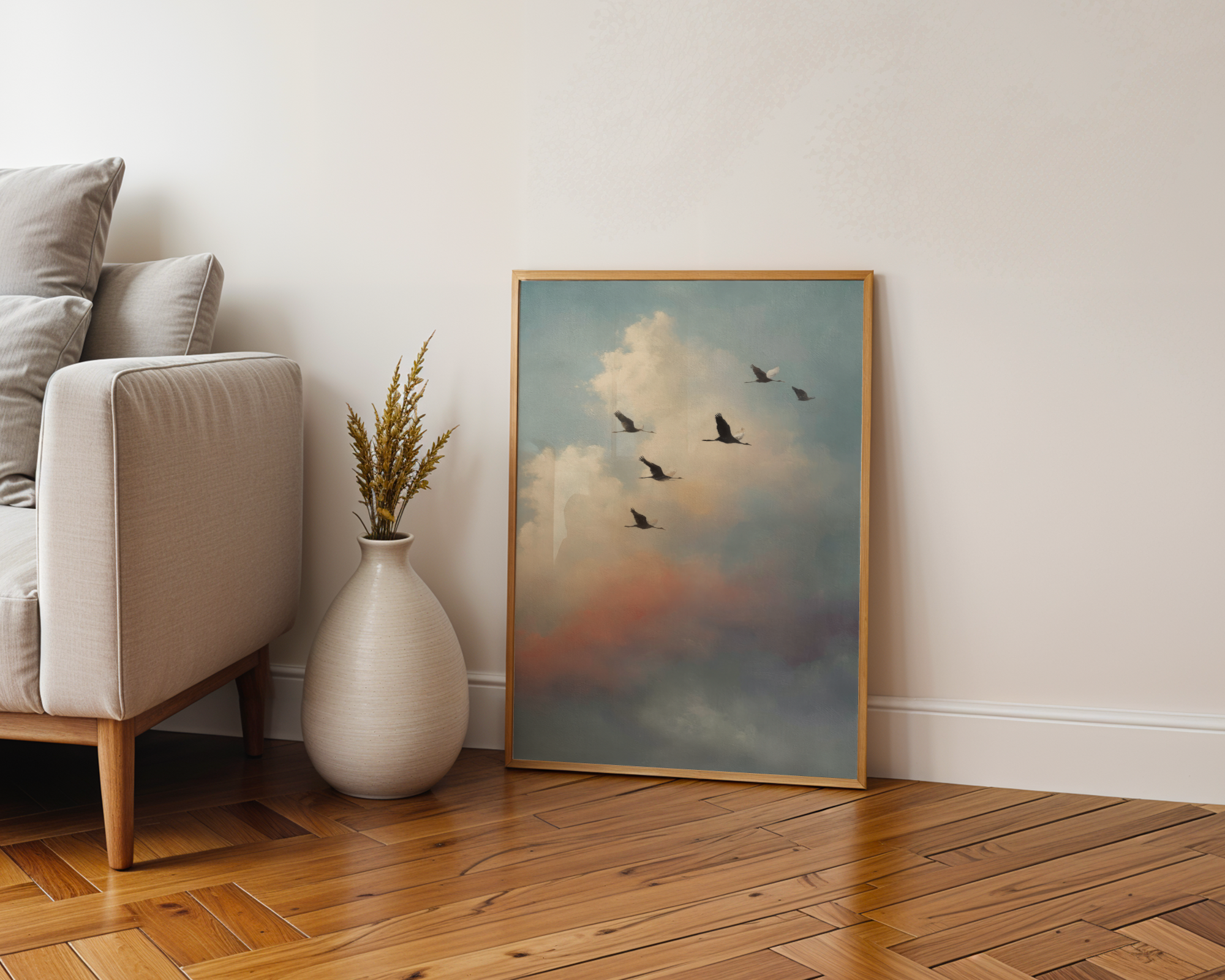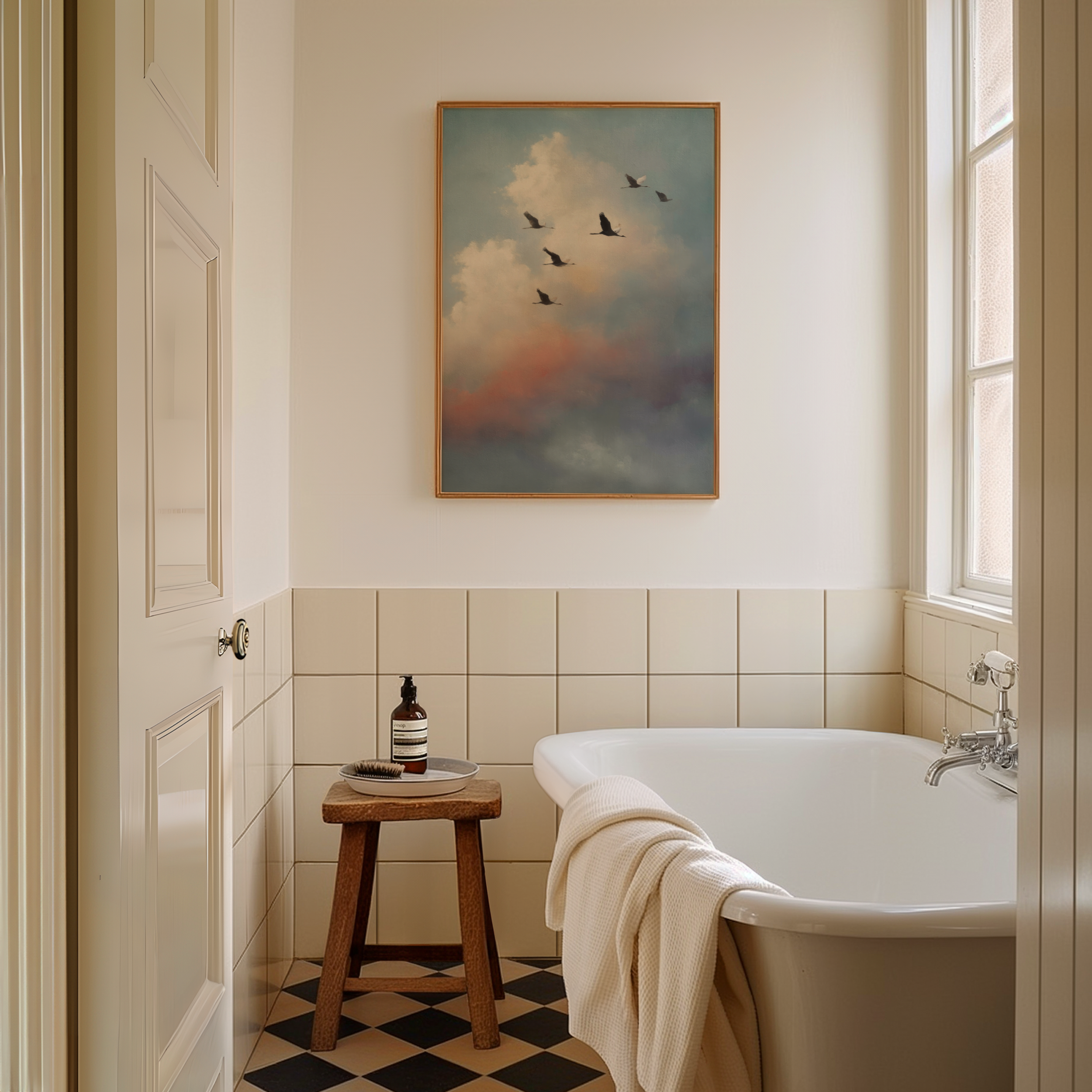 Almost Home is the kind of quiet that says everything. A group of birds in mid-migration, silhouetted against a pastel sky that glows with morning softness and dreamlike distance. It’s about movement, memory, and that lingering sense of “not quite there yet.”