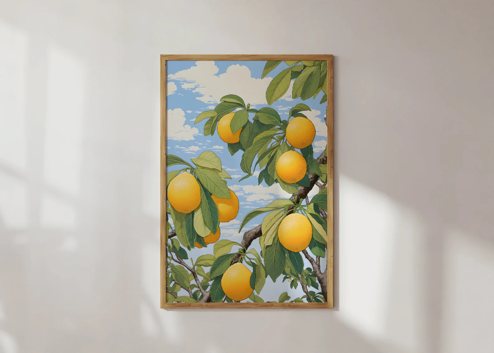 Let’s get zesty. Citrus Maximus brings big fruit energy with lush detail and a sky so blue it might flirt with you. The perfect art print for adding brightness, boldness, and just a touch of Mediterranean holiday delusion to your space. Hang it where you need a mood lift, or to passive-aggressively signal that your personality is “freshly squeezed.” It's juicy, it's punchy, it slaps.