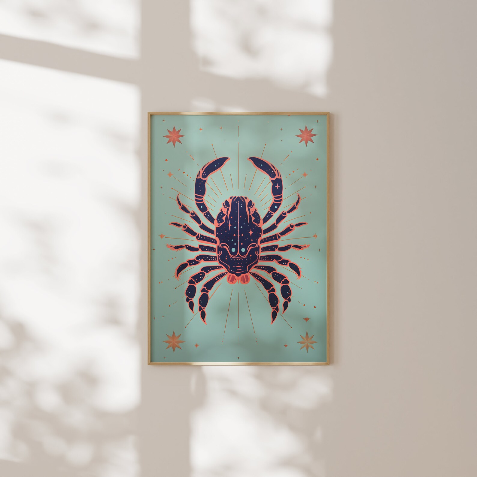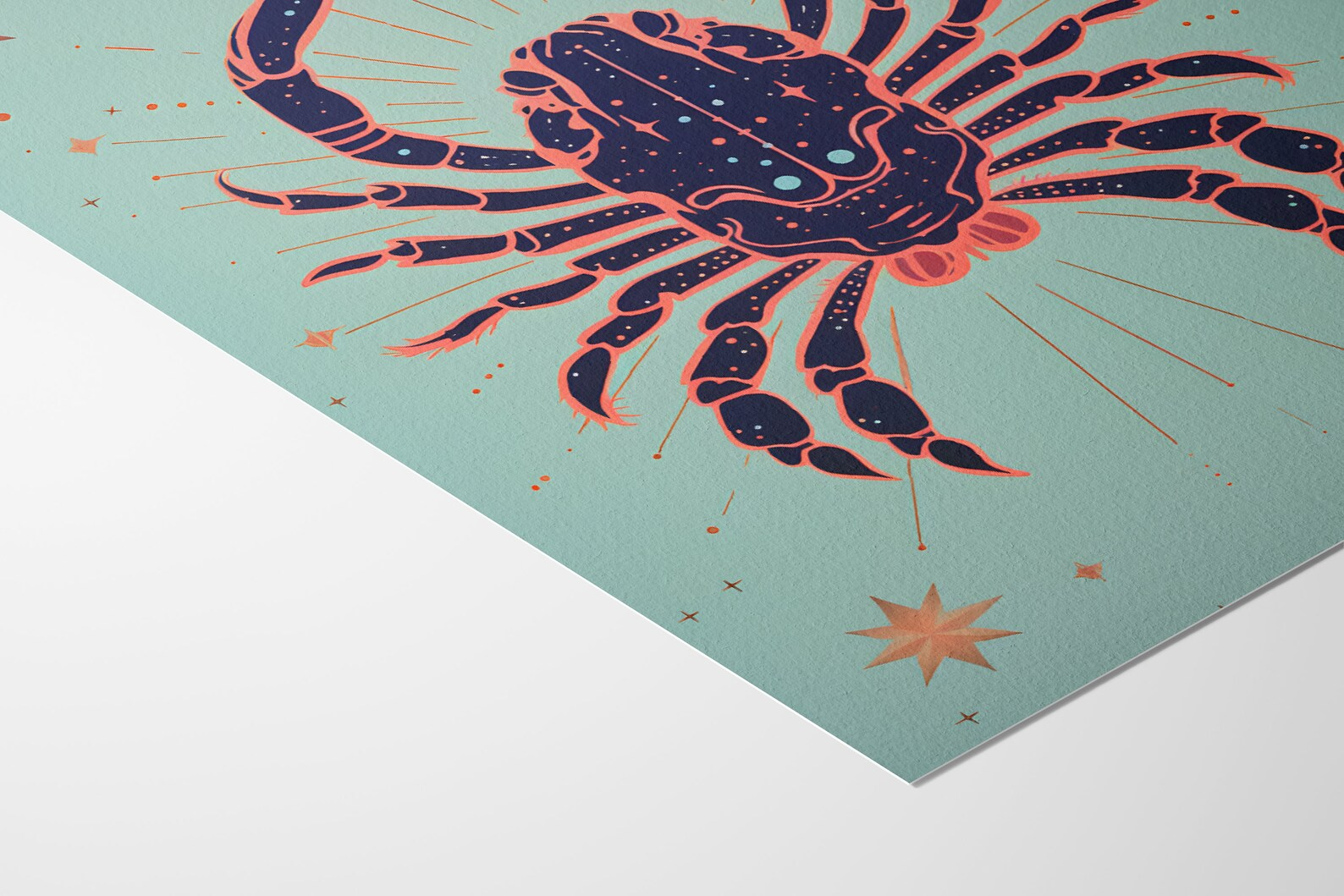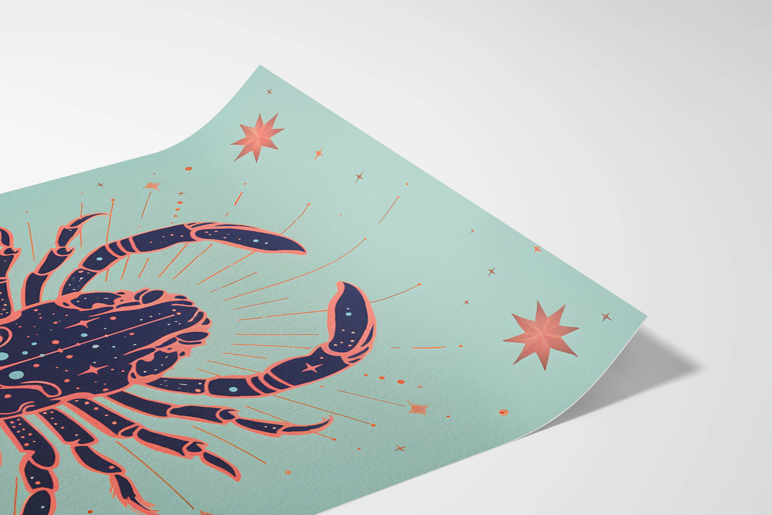 Ruled by the moon and driven by intuition, Cancers don’t just feel things, they embody them. Cosmic Cancer takes that energy to the stars with a bold astral crab radiating lunar mystique and interstellar strength. Think fierce protector with a soft core, a visual ode to loyalty, depth, and that gut feeling you always trust. This print pulses with symbolism, from its constellational glow to its vibrant, sunlit contrast. A star sign, but make it cosmic couture.