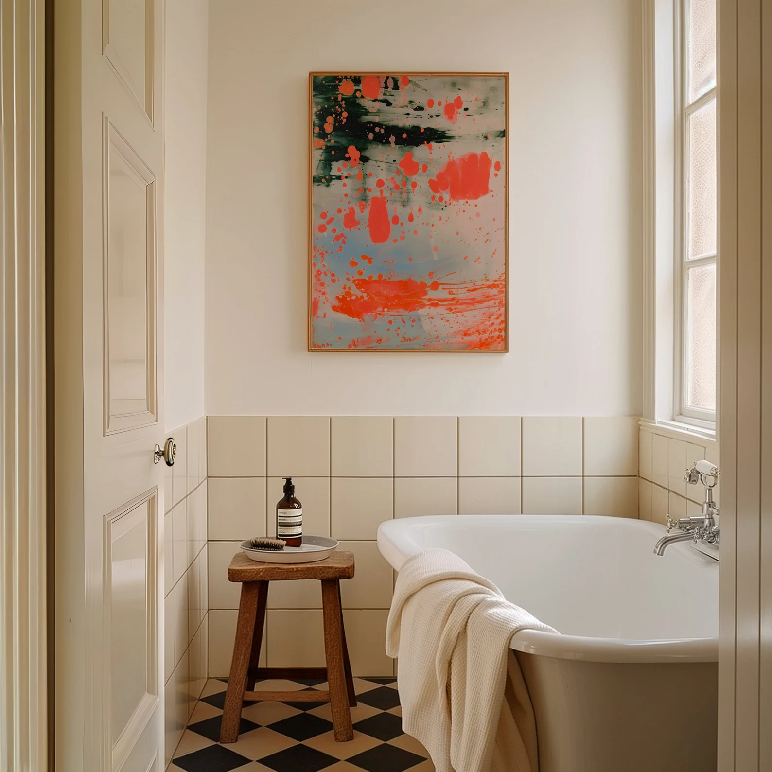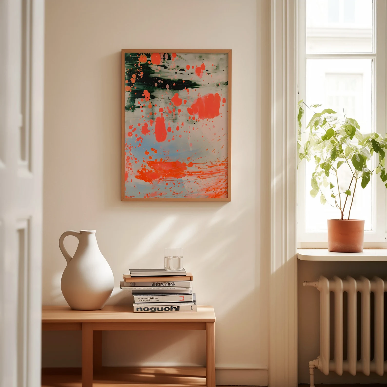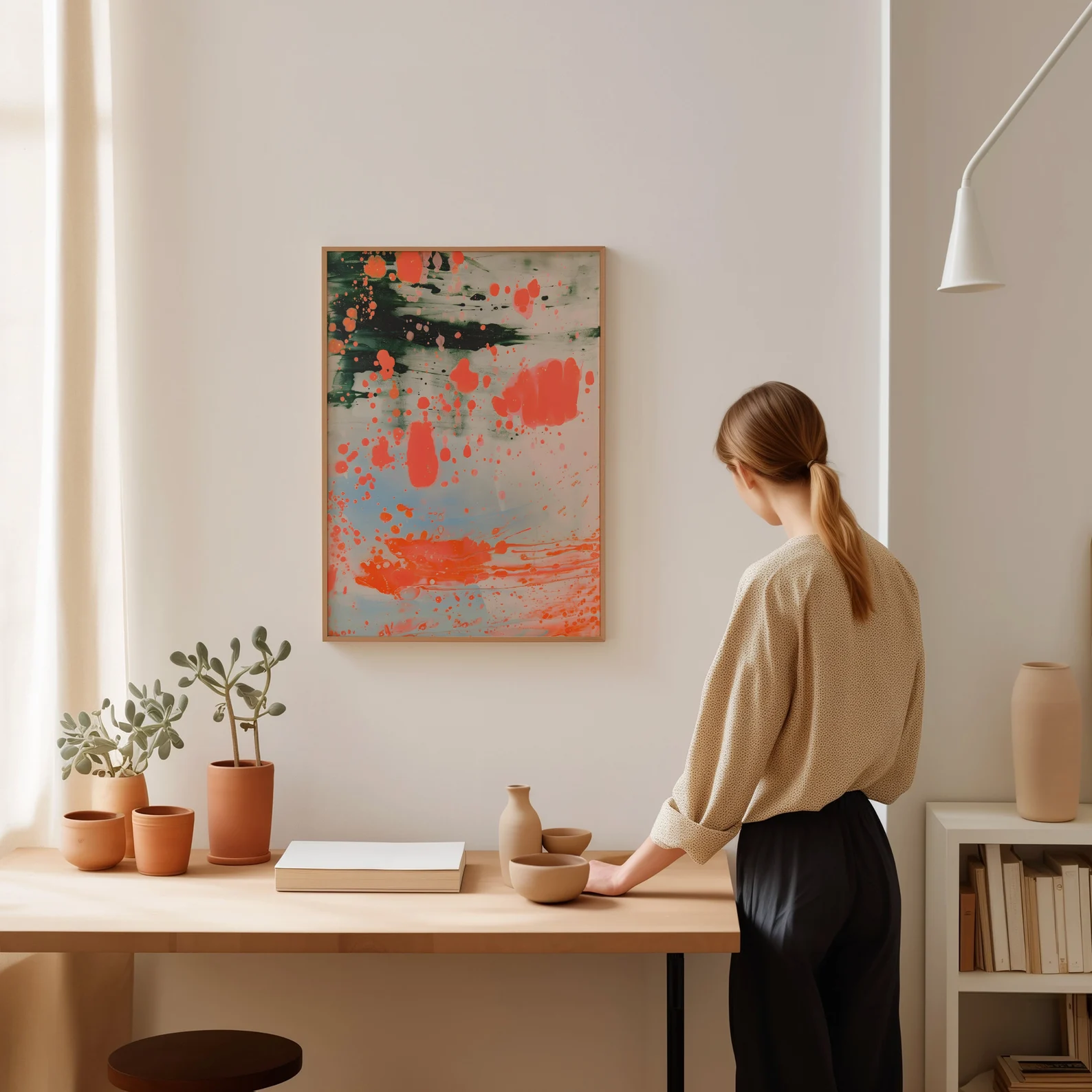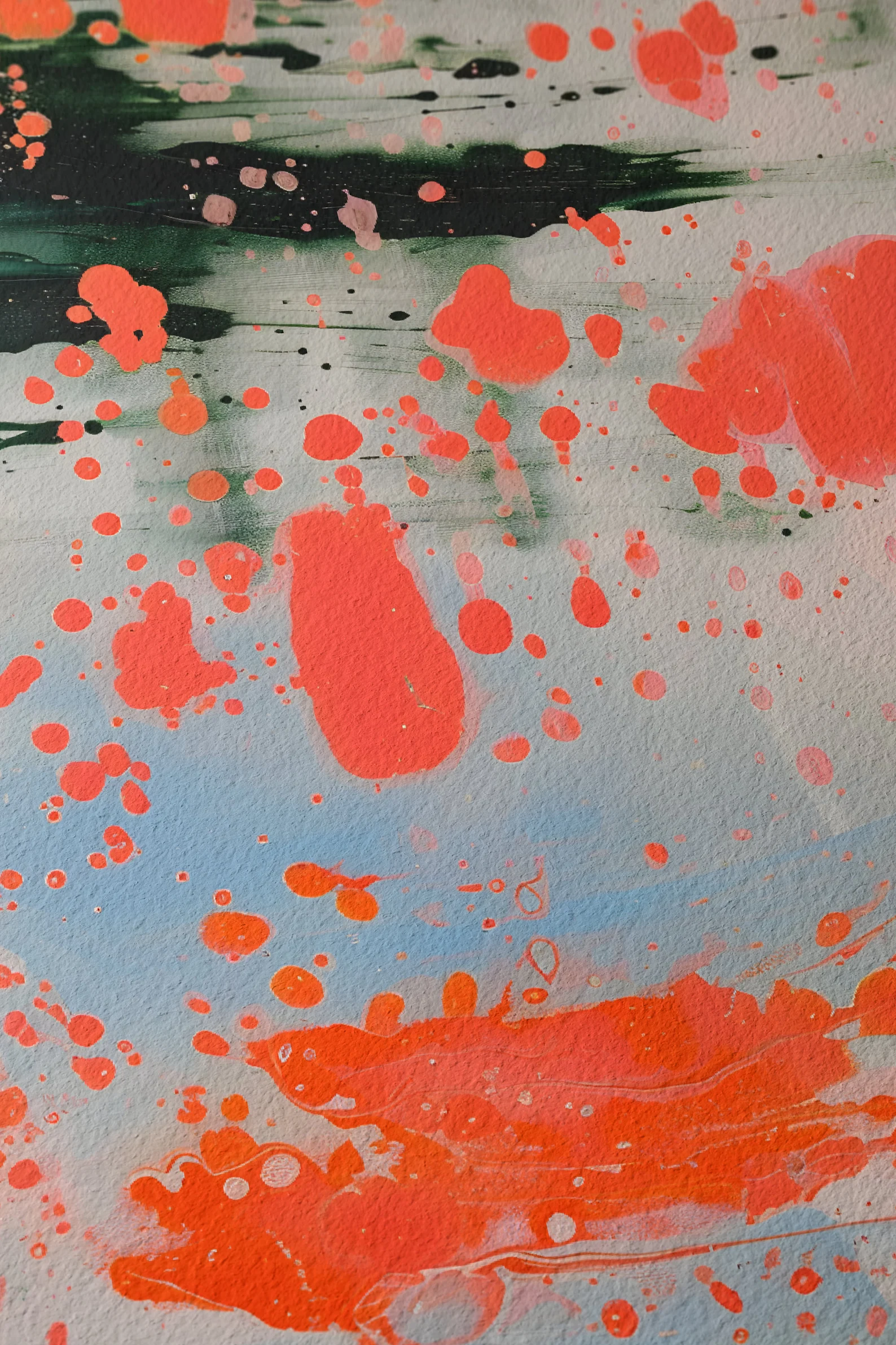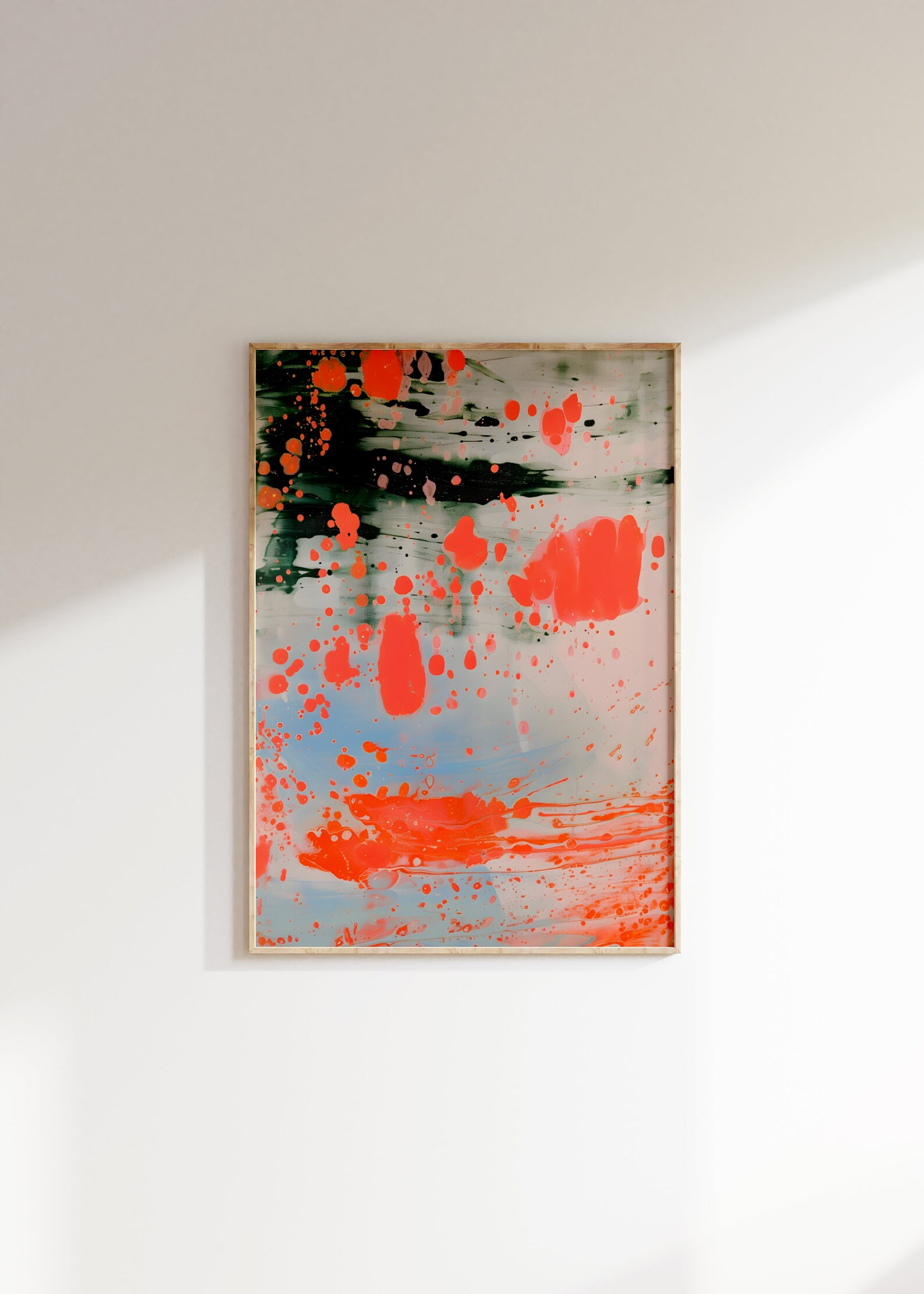 There’s nothing subtle about this piece, and that’s exactly the point. Emotional Outburst is a full-body release in paint: passionate, unpredictable, and somehow still elegant. Neon red clashes with brooding green, soft blue tries to keep the peace, and the whole thing feels like someone finally said what they meant. It’s not about making sense.