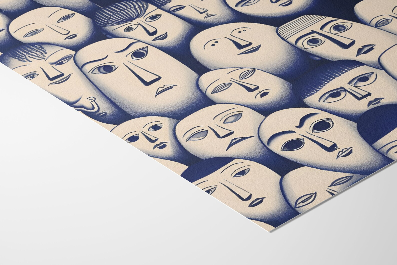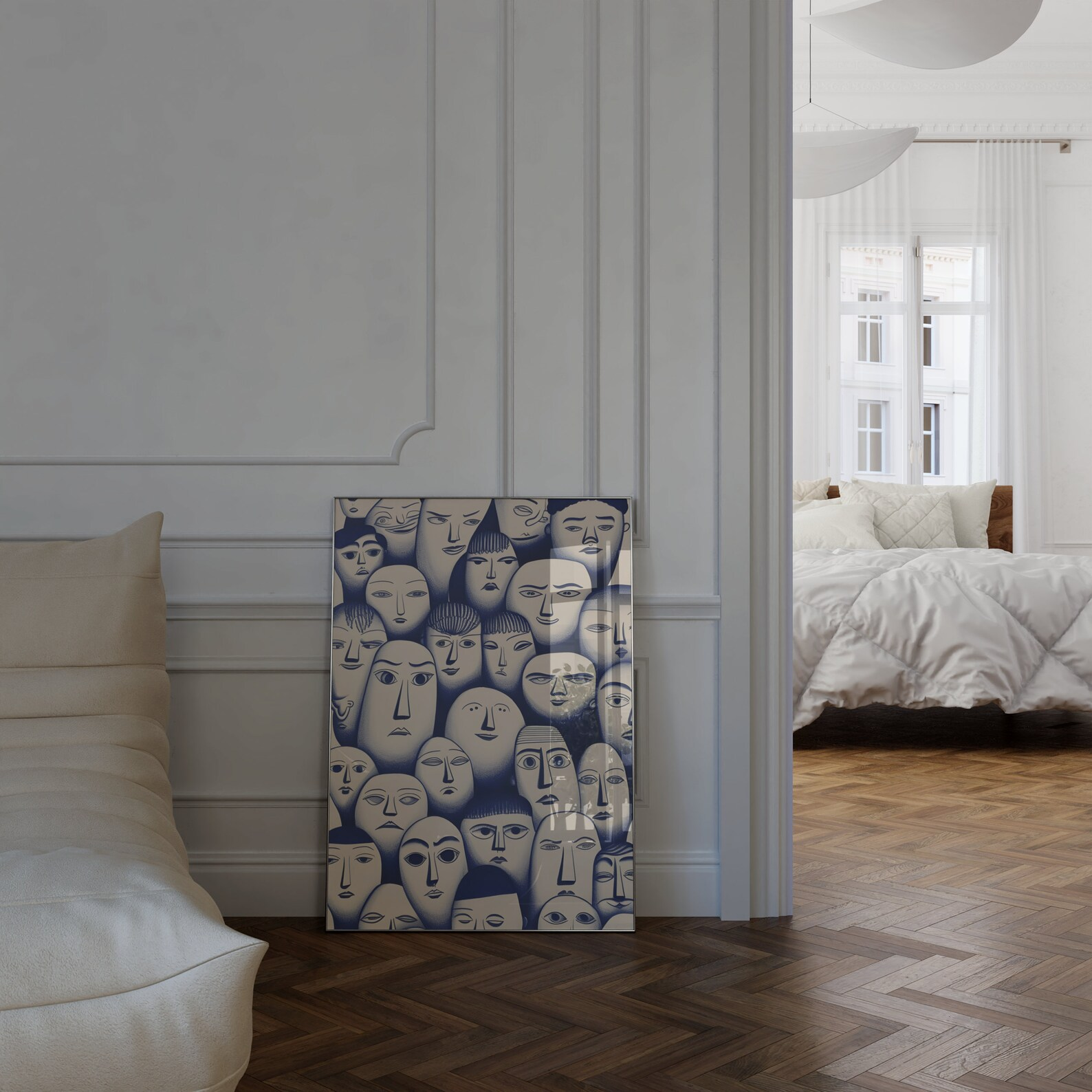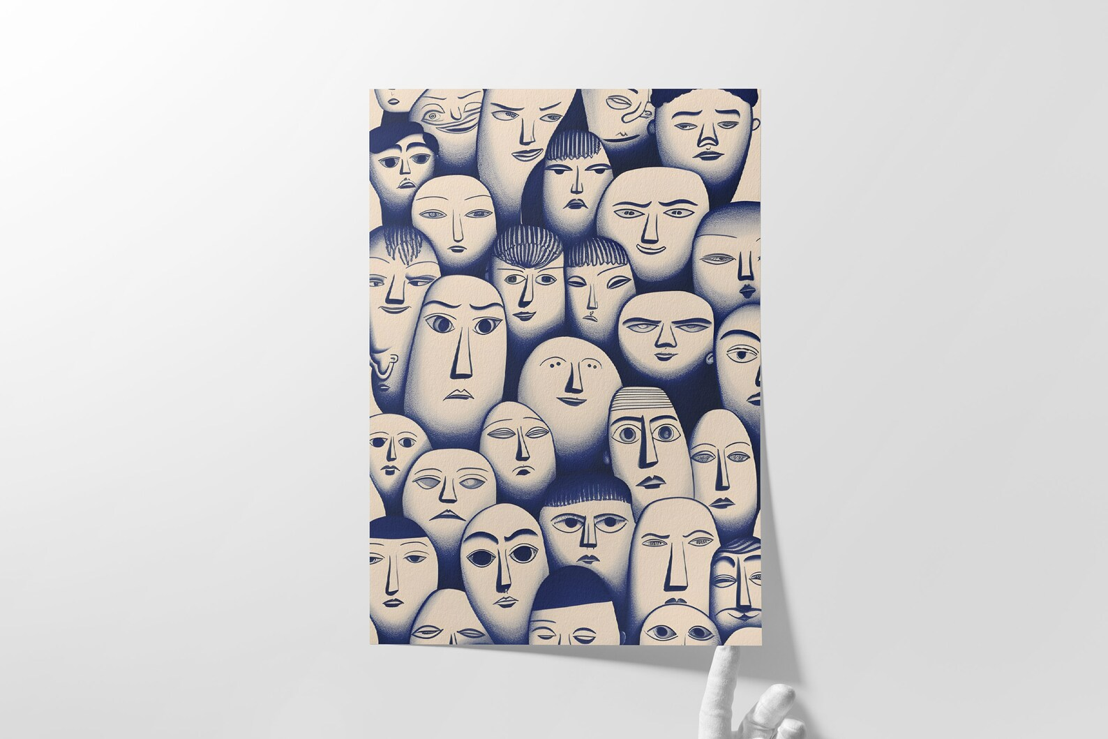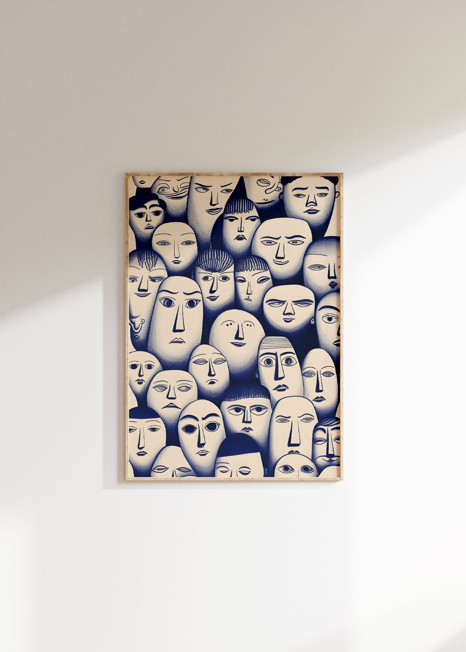 Everybody’s Watching is your walls’ new gallery of glares, side-eyes, and blank stares. A hypnotic crowd of characters in inky blue, each one with their own personality, and none of them blinking. This print is part social experiment, part visual noise, part unexpected therapy session. It’s intense, it’s moody, and somehow it’s also hilarious. Try not to project.
