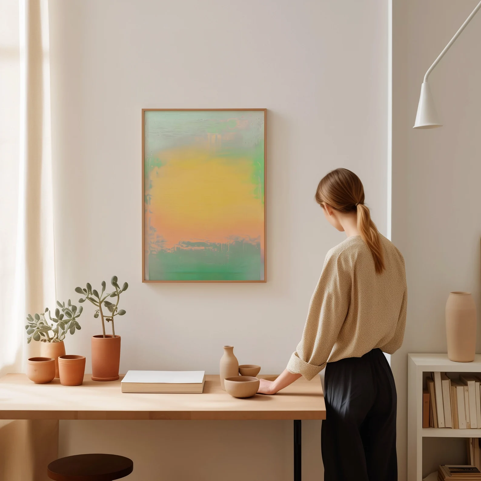 Some moments deserve to last longer. Golden Hour Forever captures the exact shade of serotonin you get when the sun hits just right and time doesn’t matter. Was it a sunset? A morning? A memory? Doesn’t really matter — this piece is a blur of light, warmth, and wish-you-were-here energy.
