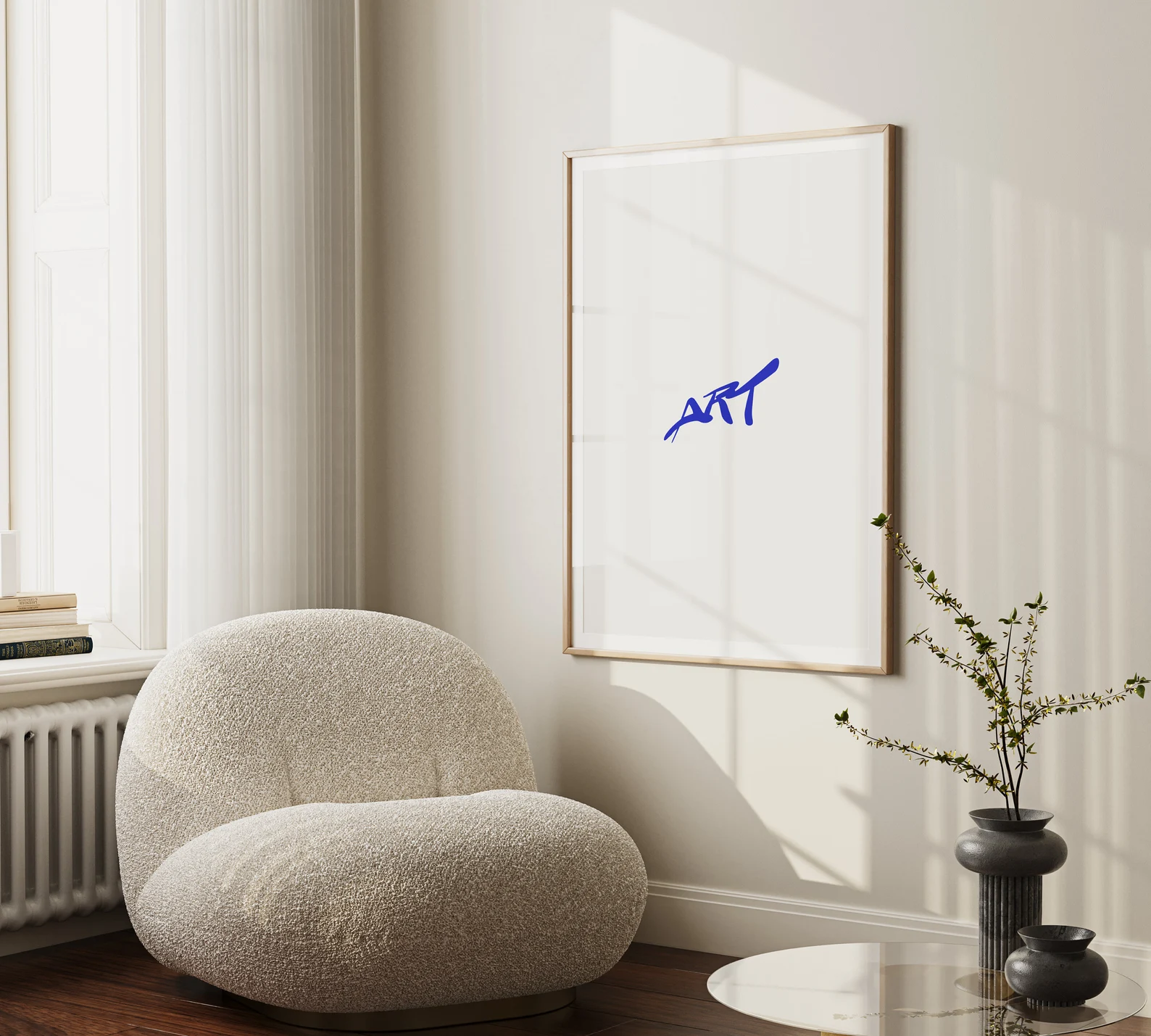 Straight to the point and unapologetically bold, Just Art is what happens when design stops pretending to be anything else. It’s cool. It’s confident. It’s giving main character wall energy. With a crisp white background and electric blue brush lettering, this print balances minimalist design with maximum personality. Whether you’re making fun of the art world or celebrating it, same result: your space just got instantly sharper.