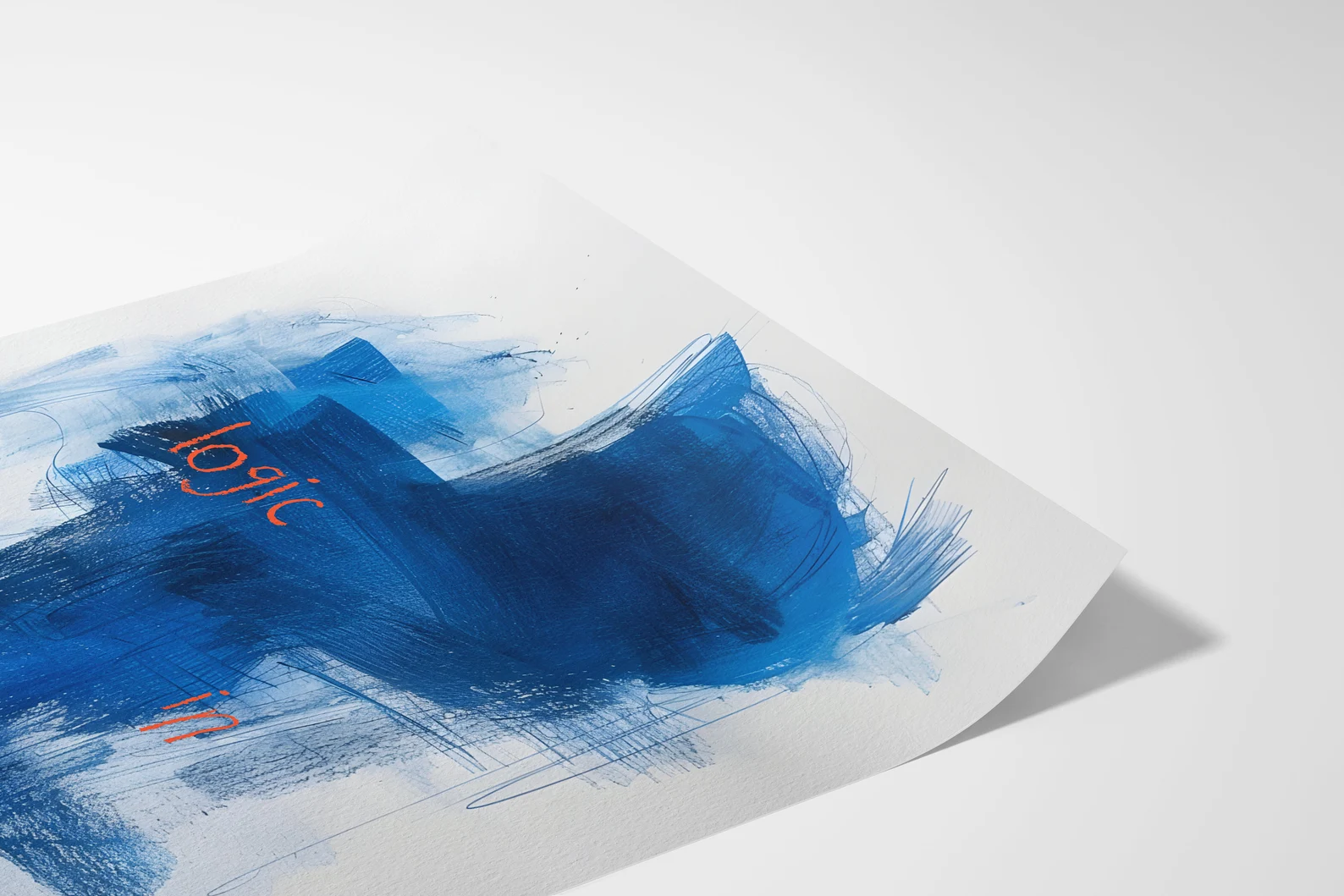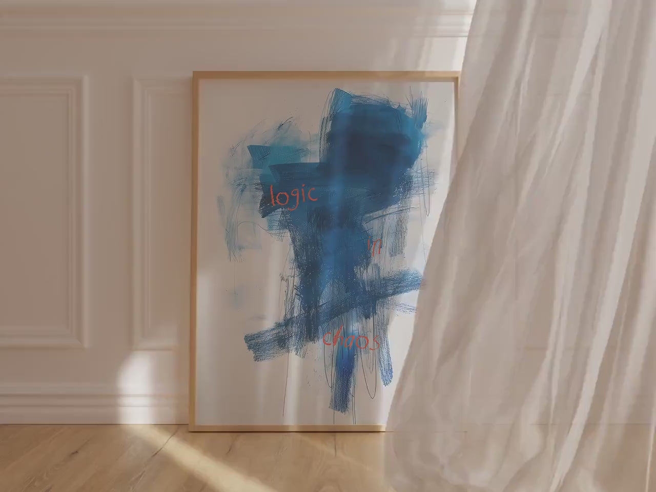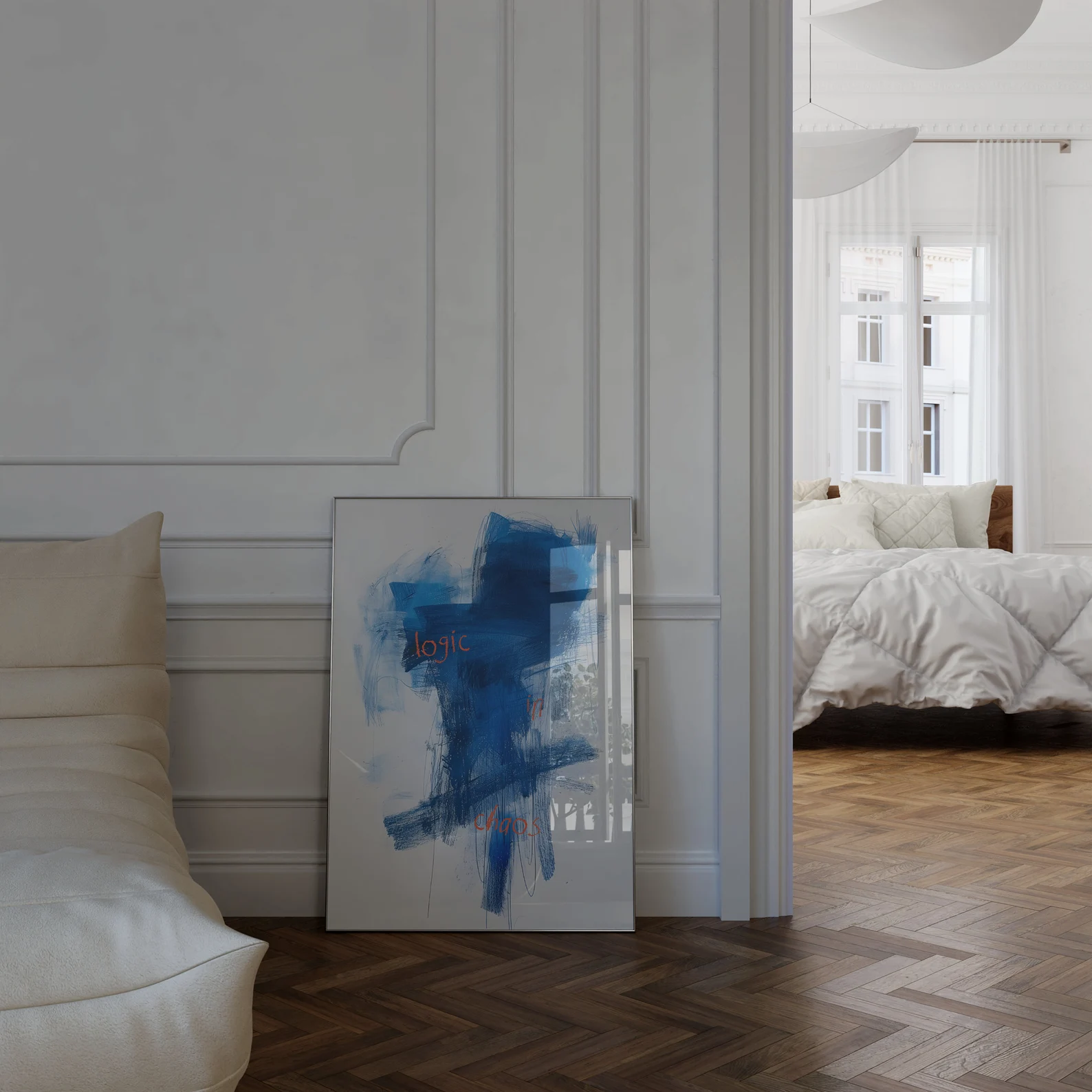 Logic in Chaos is part abstract expression, part spiritual epiphany. Slashes of bold blue scrawl across a clean white space like ideas mid-meltdown, but look closer and you’ll spot the message hiding inside: clarity, in the mess. This is the visual equivalent of journaling at 3am, or finally understanding your own brain. Wild, raw, and a little bit genius.