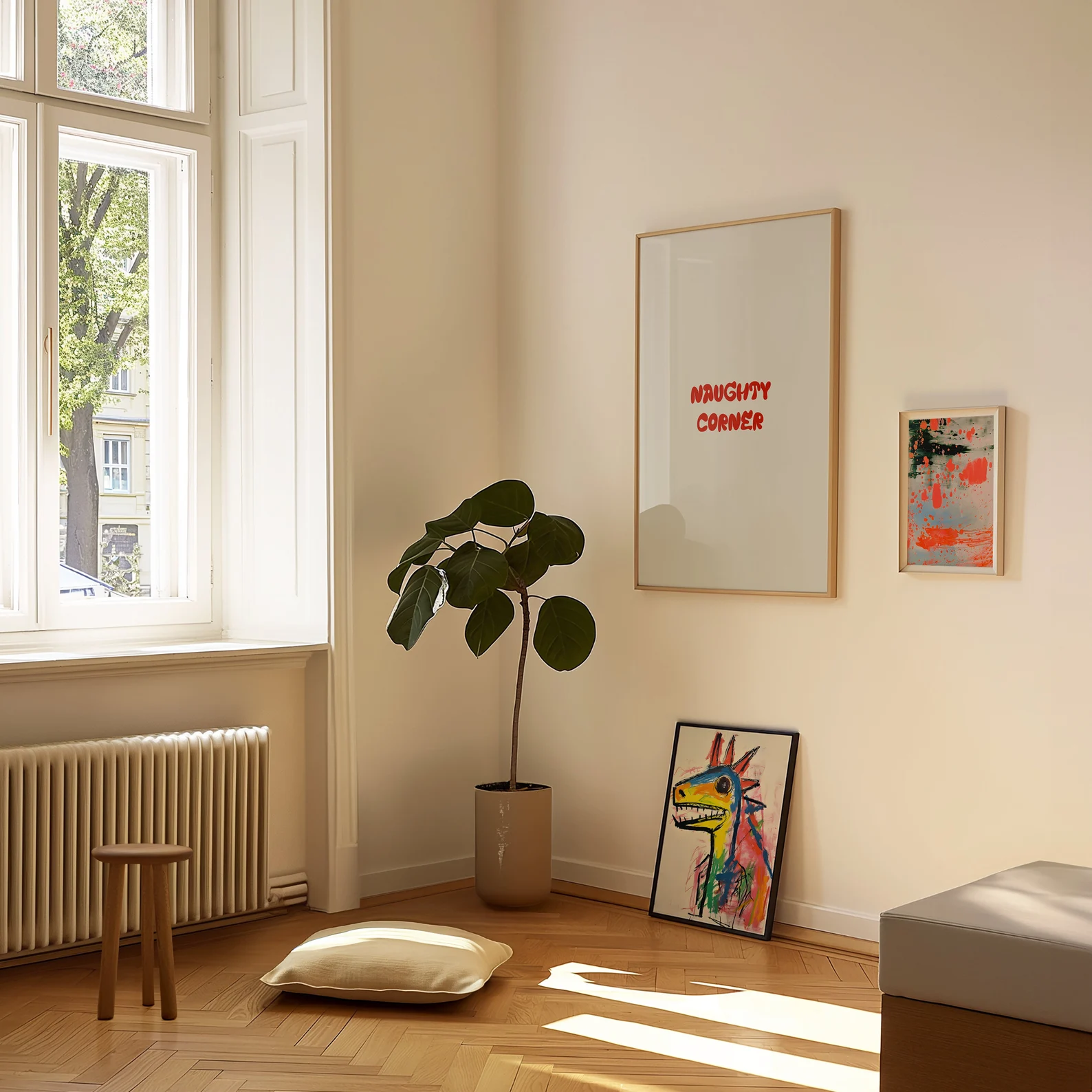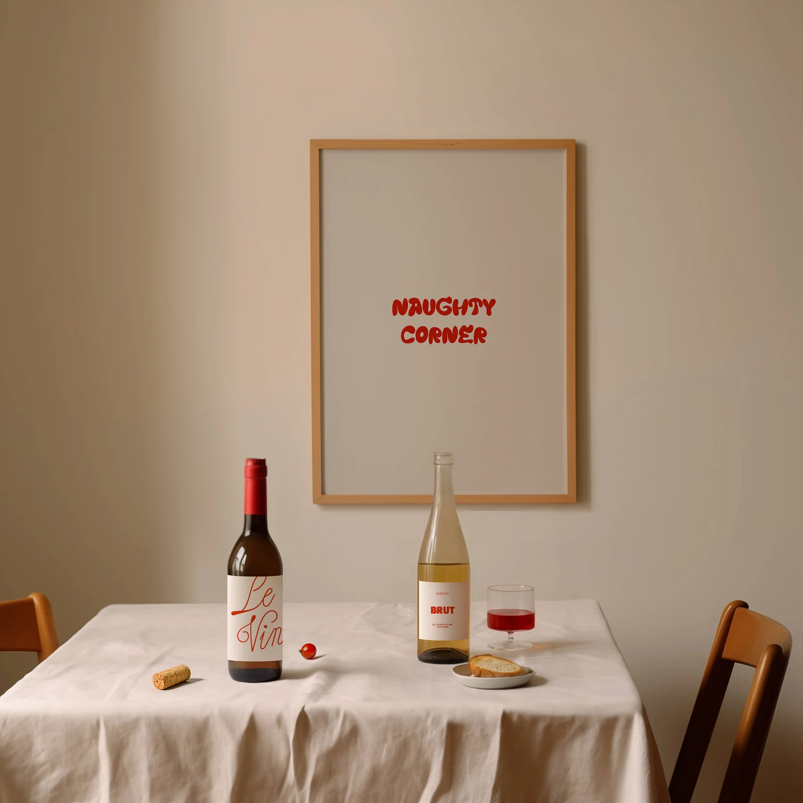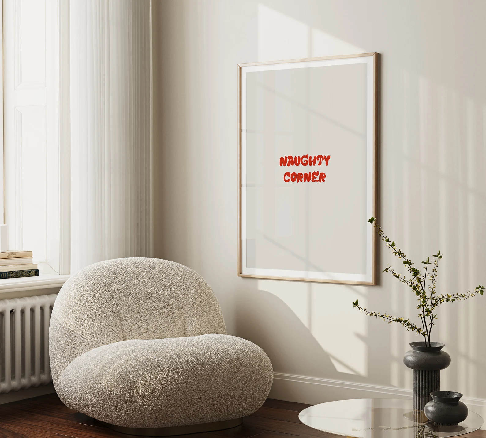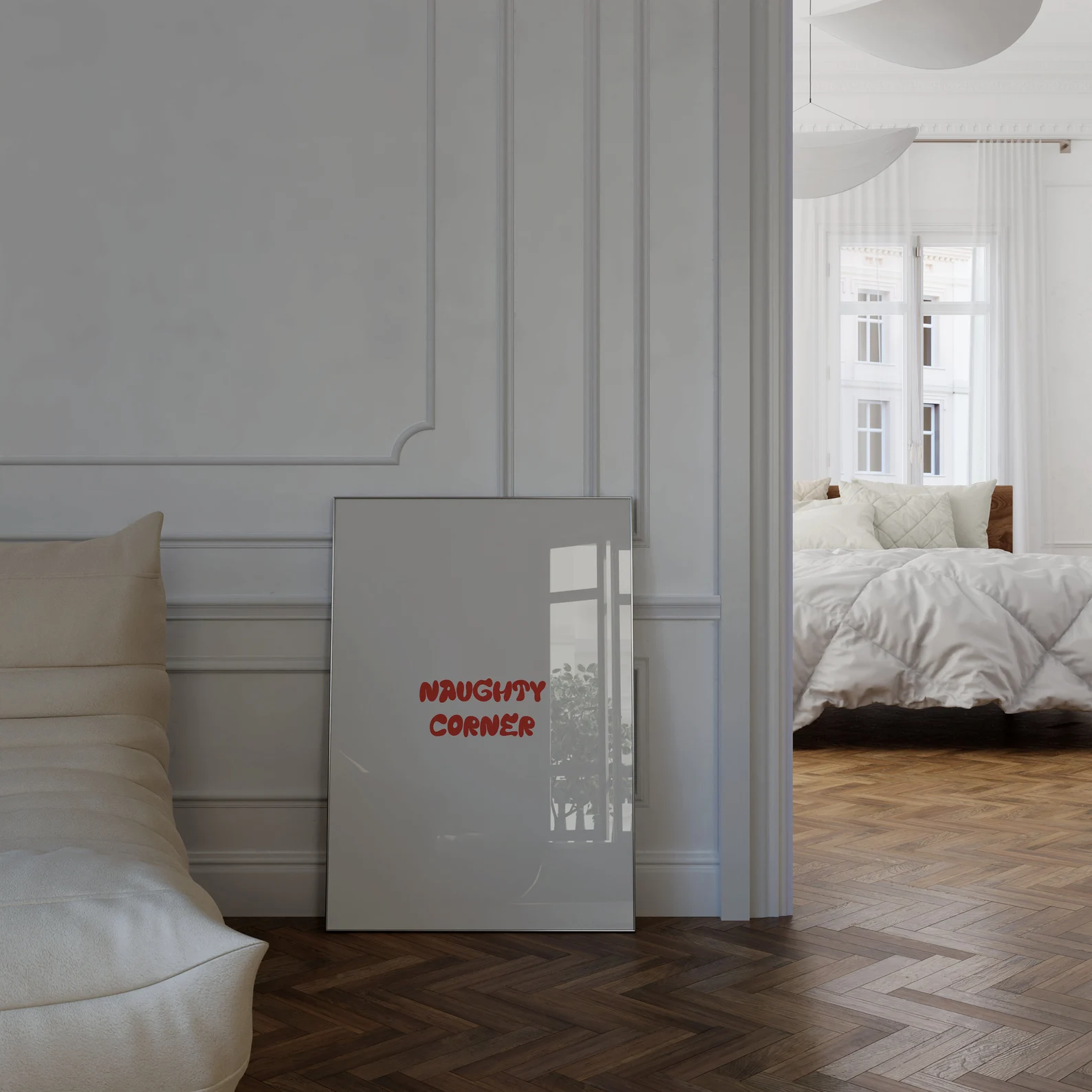Minimal design, maximum mischief. Naughty Corner is for the bold, the bad, and the beautifully unhinged. It’s part art, part inside joke, suggestive enough to raise eyebrows, clean enough to hang in plain sight (unless your grandma comes over often).