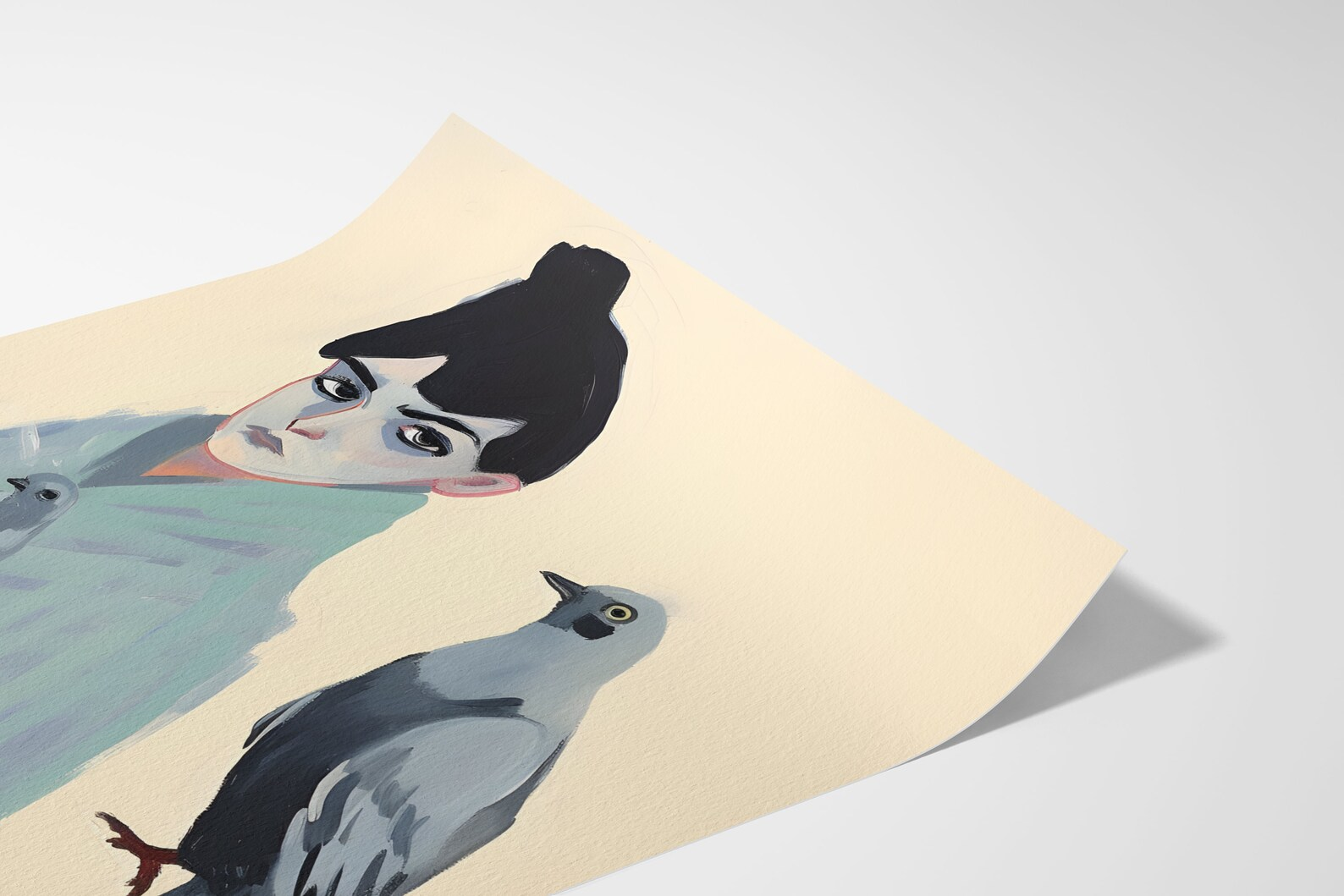This is Pigeon Girl. You’ve seen her. At the bus stop. In your dreams. In line at the co-op buying only oats and making intense eye contact. Wrapped in a cryptic shawl and surrounded by three emotionally complex pigeons, she’s giving “Victorian ghost with a skincare routine.”