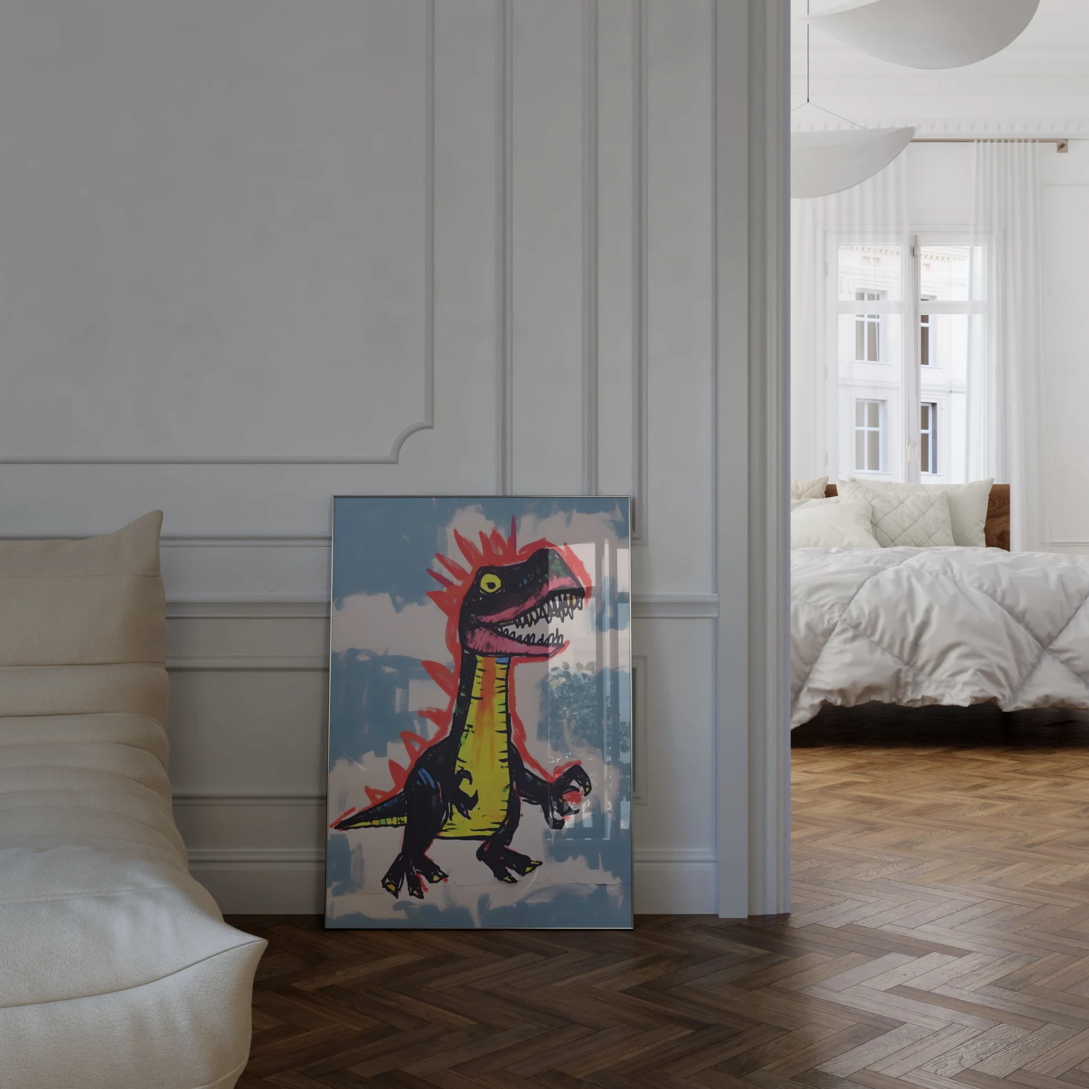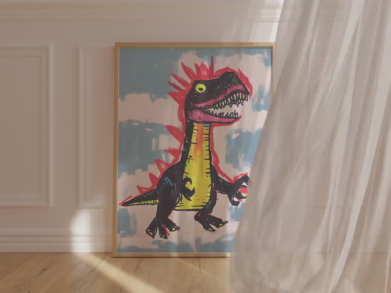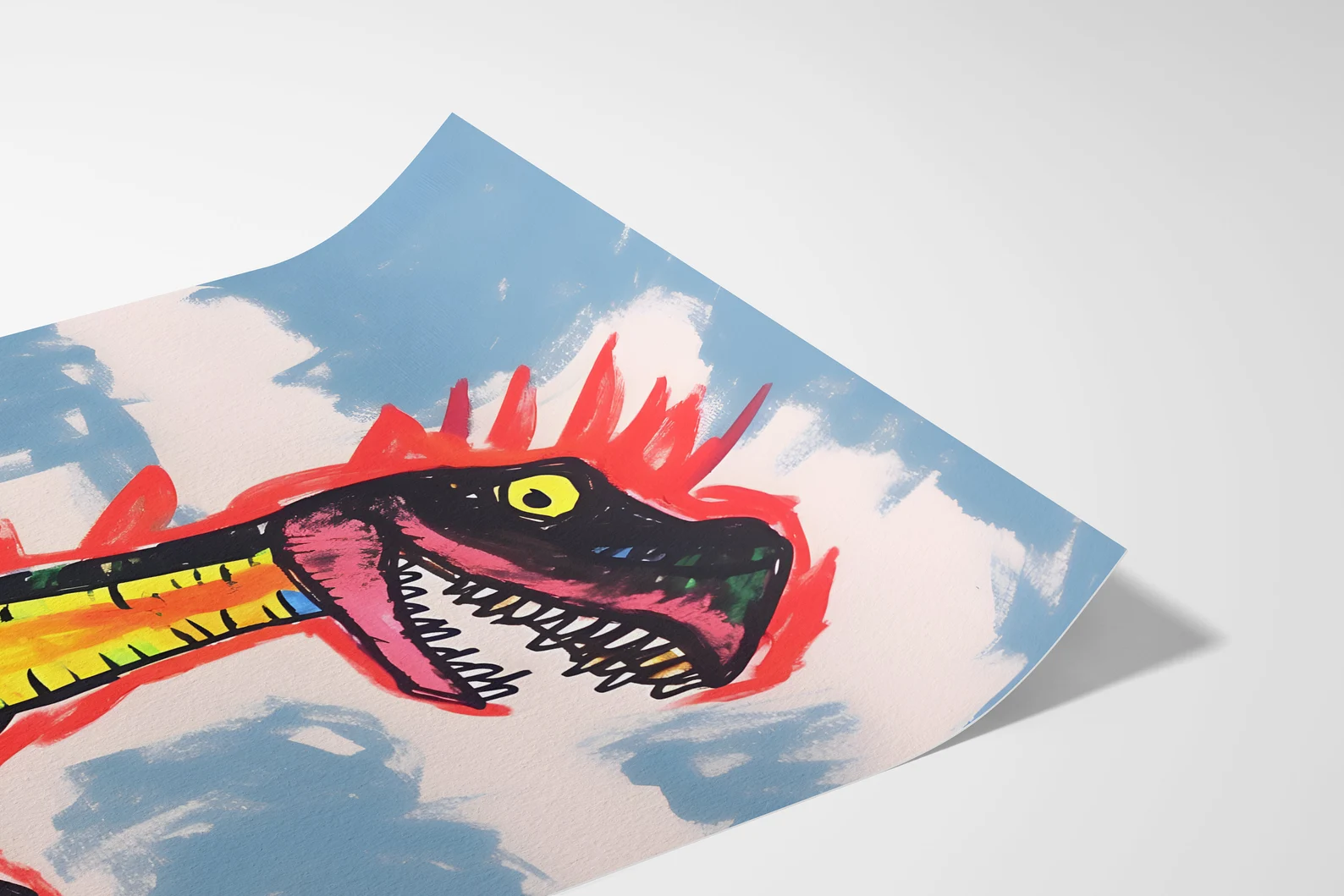 Rawr isn’t here to blend in. This chaotic cutie is bold, bright, and dangerously fabulous like if your inner child took over the art direction after one too many fruit roll-ups. Between the highlighter spikes and the feral grin, this piece is pure prehistoric punk. It’s giving museum-quality crayon tantrum in the best possible way. Warning: may cause spontaneous joy and a sudden desire to roar.