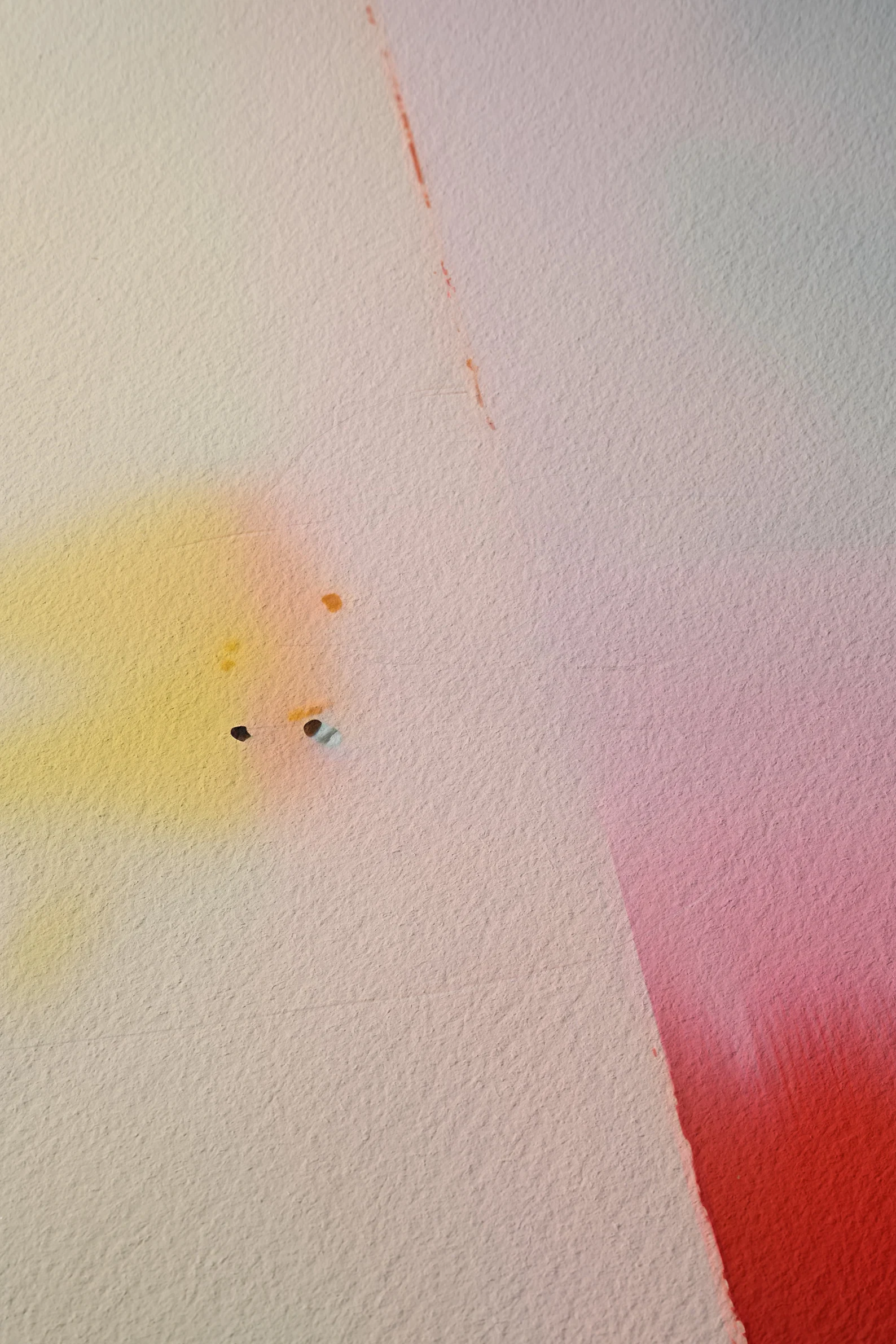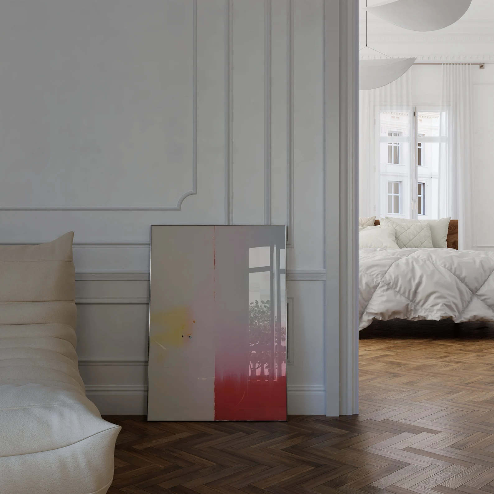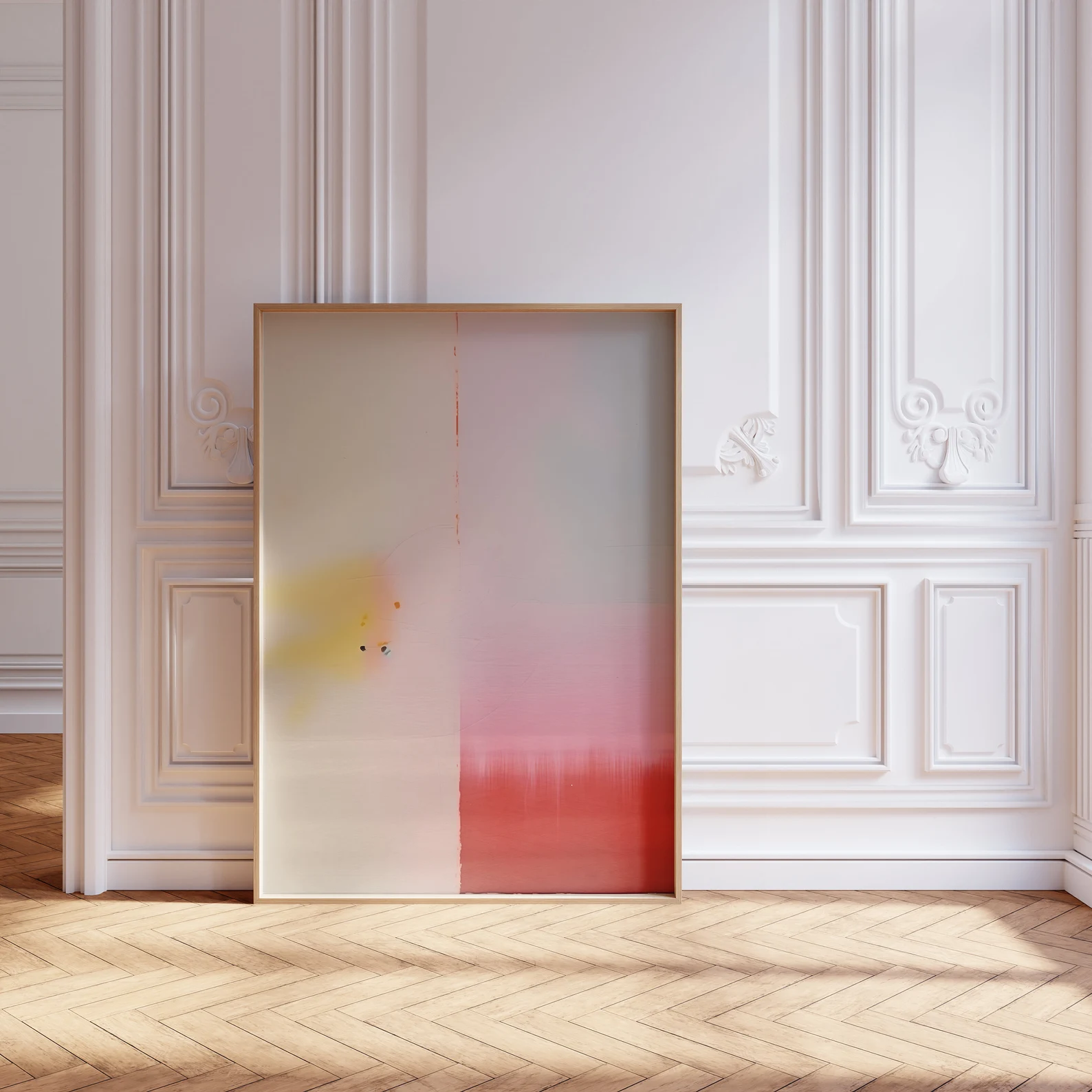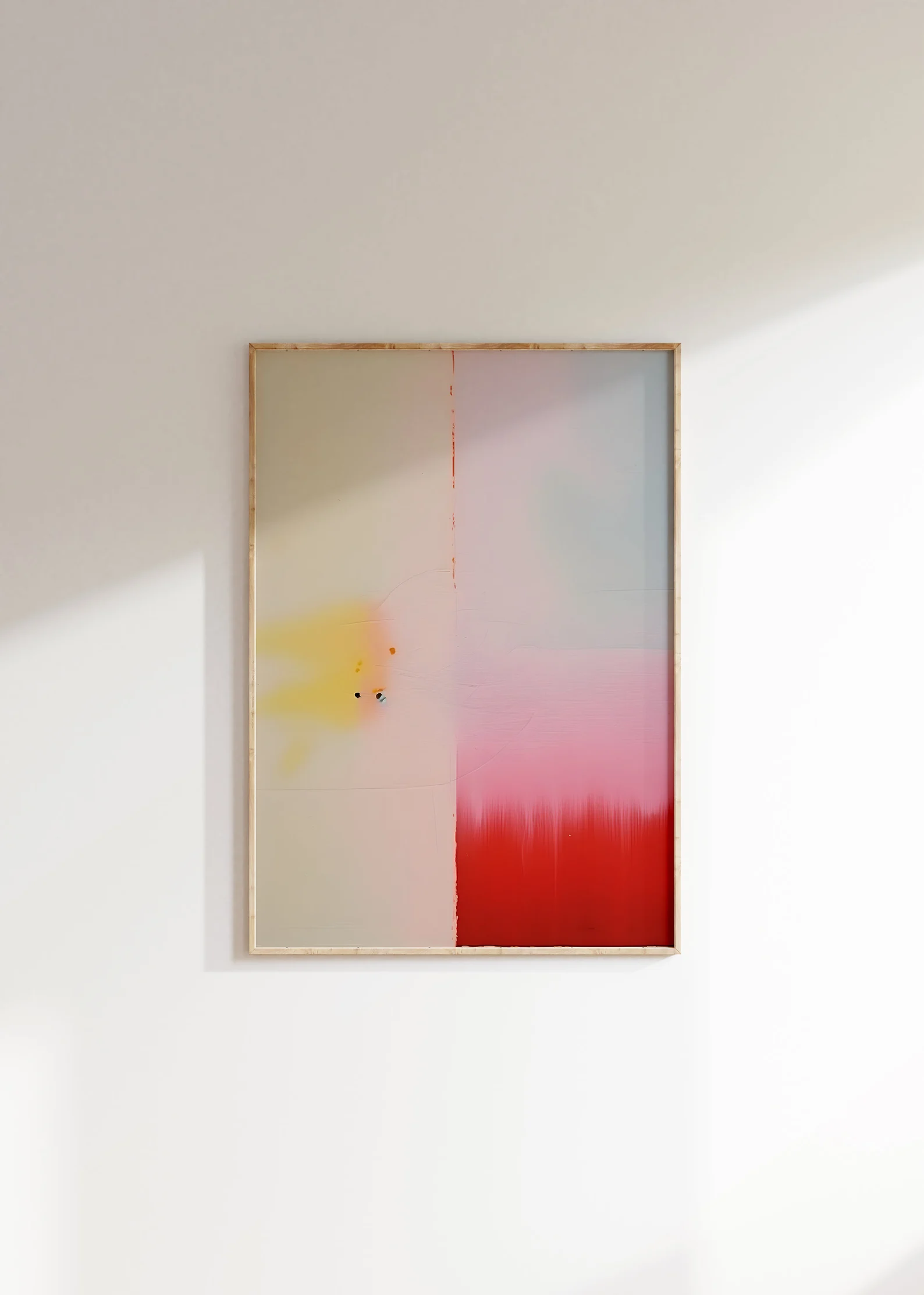 This piece walks the line between tension and calm — a slow-burn of colour that feels both meditative and slightly unhinged. Blurred pastels meet sharp reds, like something delicate just got interrupted. It's abstract in the best way: full of meaning, but only if you bring it with you.
