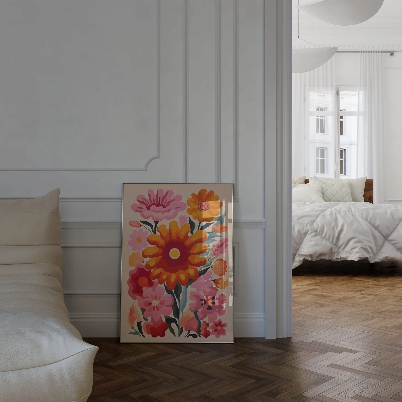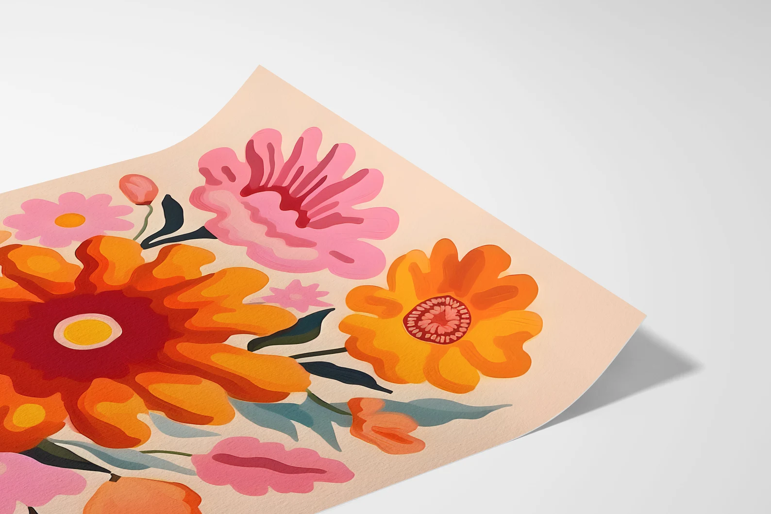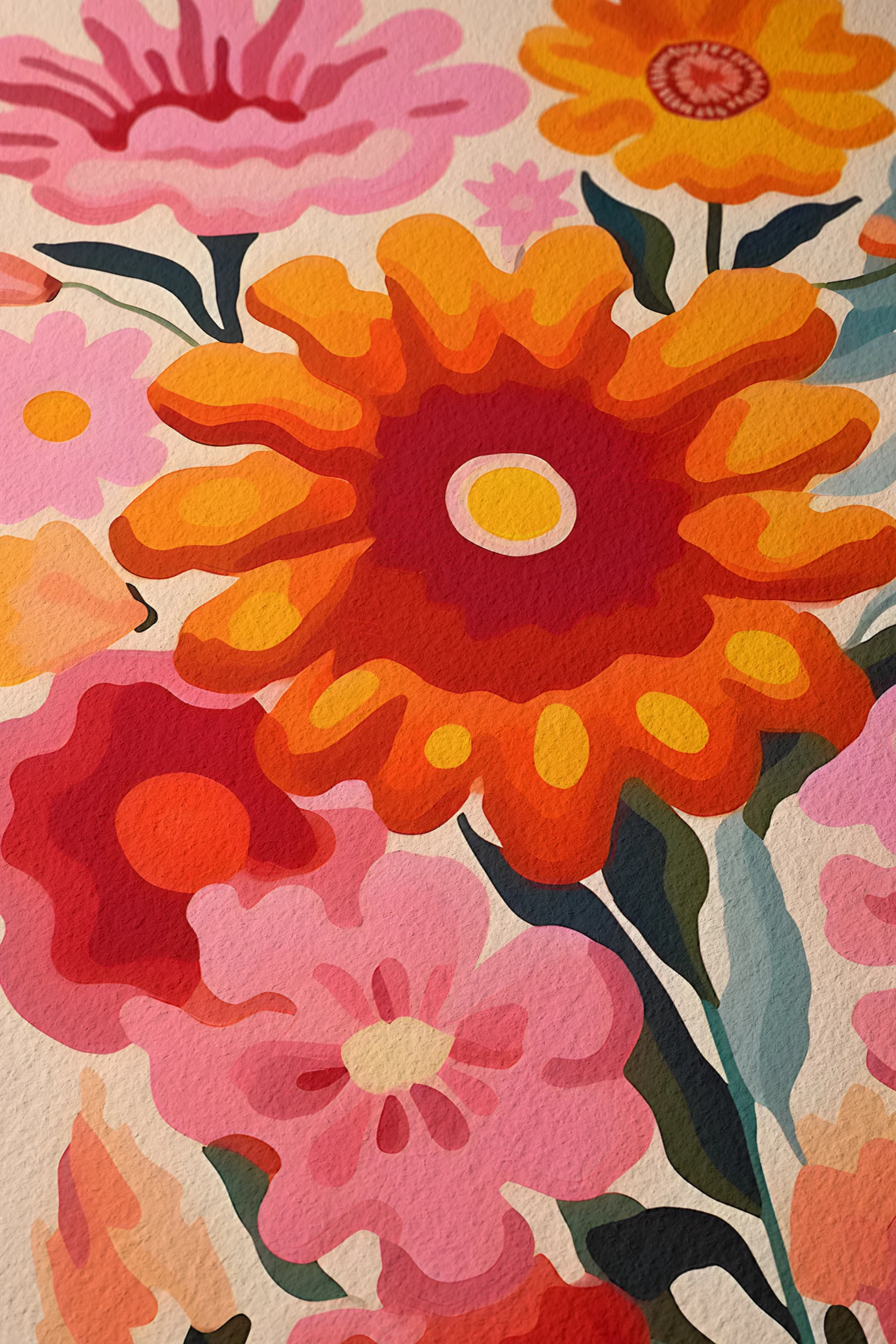 If sunshine had a hobby, this would be it. Too Many Flowers, Not Sorry is a celebration of maximalist joy, packing punchy pinks, flaming oranges, and unapologetically oversized blooms into one wild bouquet of a print. It’s like a summer anthem for your walls, loud, floral, and absolutely in bloom.